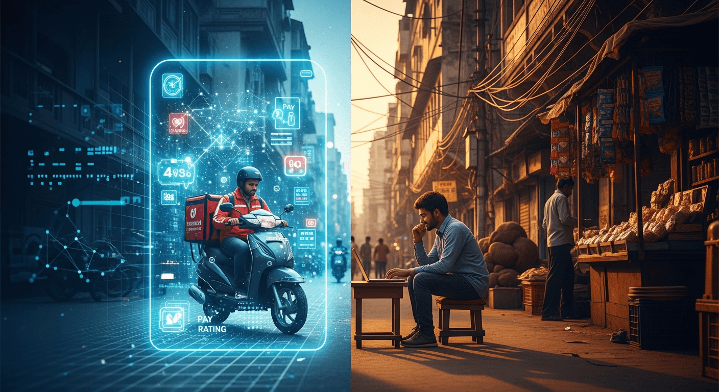 The platform-enabled gig economy grew rapidly over the last half-decade. Estimates in official commentary show the gig workforce rose from roughly 77 lakh in FY21 to about 1.2 crore in FY25 — a 55% jump — and non-agricultural gig jobs are projected to constitute a meaningful share of employment by the end of the decade [^1][^2]. Platforms now coordinate work allocation, monitoring and payments for delivery, quick commerce, digital micro-tasks and many other services. That scale brings opportunity, but also new forms of income volatility and thin credit histories for workers.
