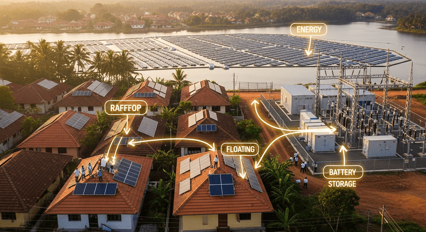 - Incentives and fiscal support for floating PV and aggregated rooftop tenders (Draft Kerala Power Policy) encouraged new business models where the utility or local government aggregates many small sites.