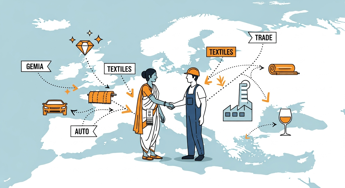 Price advantage for exporters: duty elimination on garments, leather, electronics components and gems/jewellery means Indian producers and artisans can immediately price more competitively across Europe. That’s a direct buffer for sectors hit by punitive tariffs elsewhere.