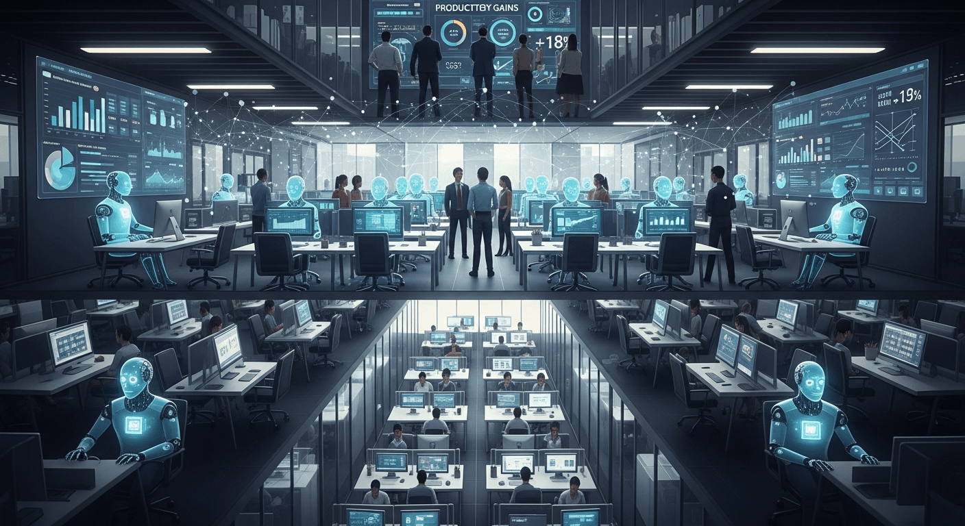 [Hypothetical: 60% of mid-level roles affected] as agentic stacks compress repetitive supervision and orchestration work into software-controlled workflows.