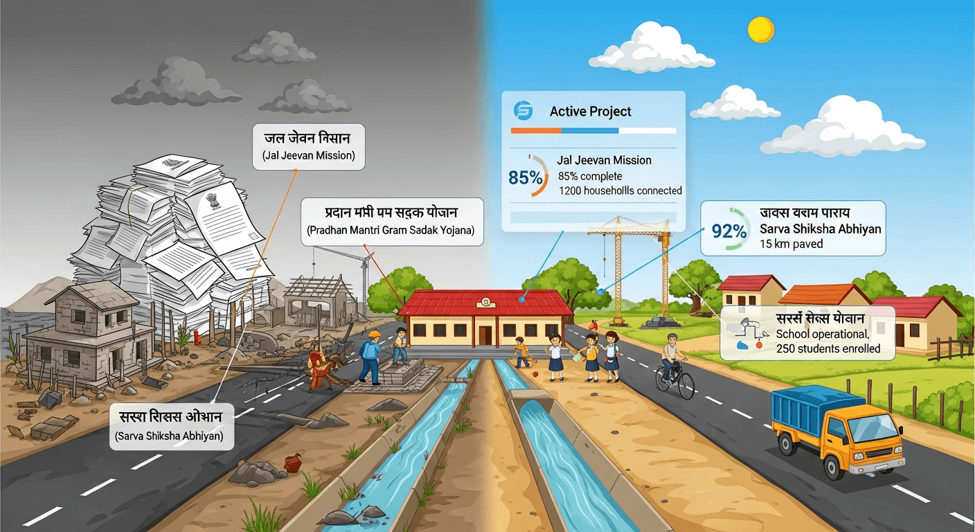 - Real-time fund tracking: a unified dashboard (Centre + state) showing releases, utilizations, pending approvals and reasons for delay.