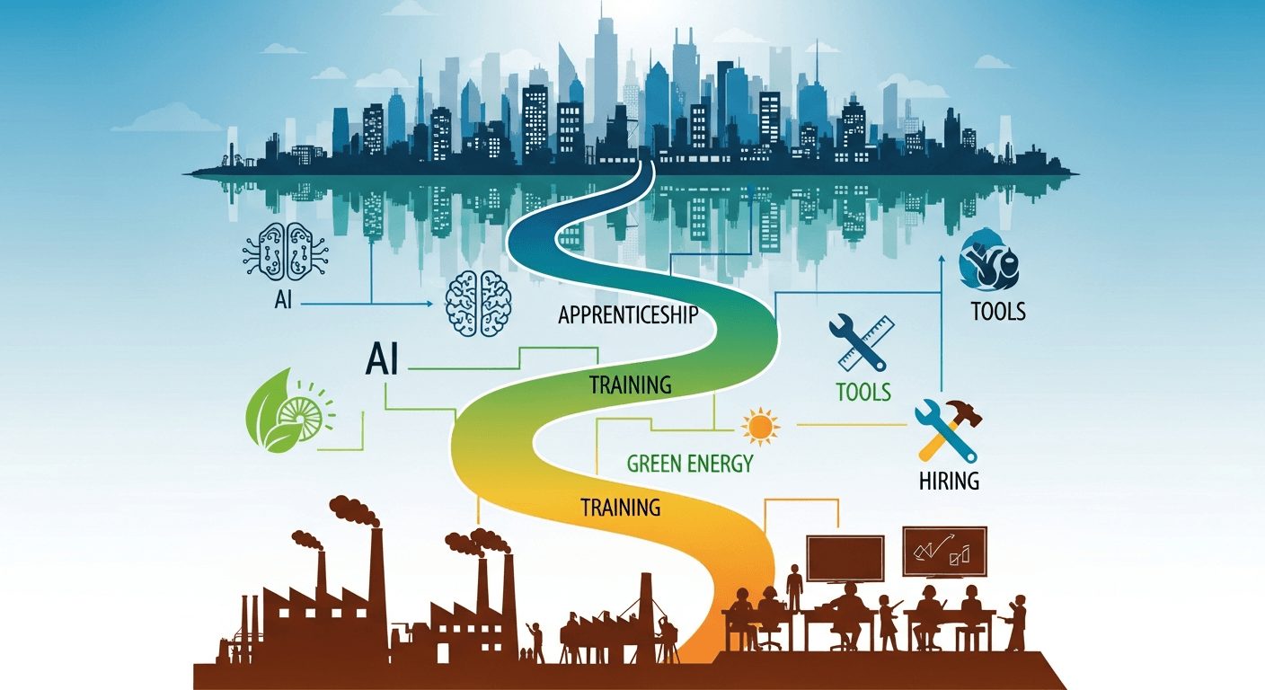 - Scale employer‑led apprenticeships and earn‑while‑you‑learn models, with shared financing between public funds and employers.