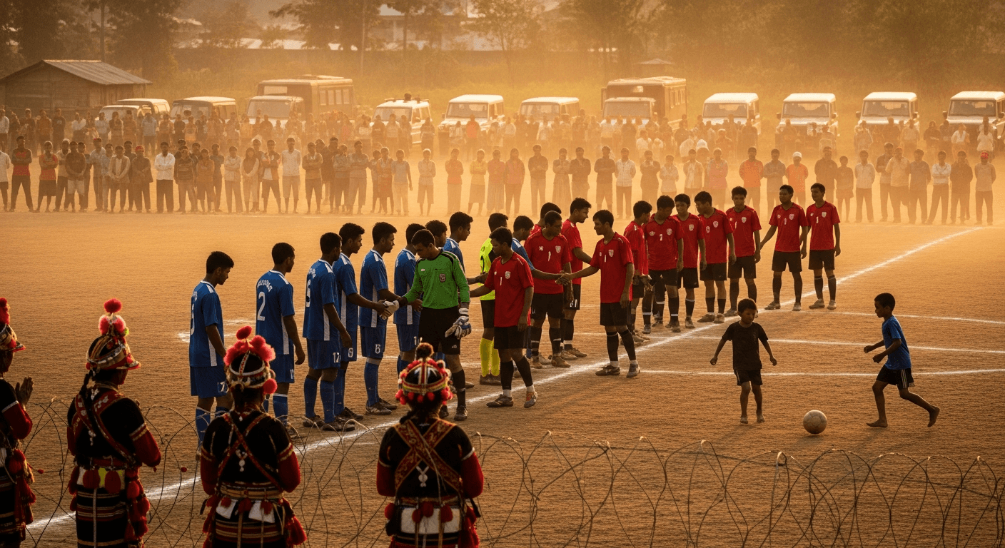 Manipur’s recent years have been scarred by an ethnic rupture that turned neighbours into strangers, villages into fortified islands, and everyday movement into a calculated risk. Buffer zones, night patrols, and detours that add hours to journeys have re-drawn ordinary geography into an invisible map of mistrust. Against that landscape, a football ground is deceptively small — ninety metres of earth where difference can be put aside for 90 minutes.