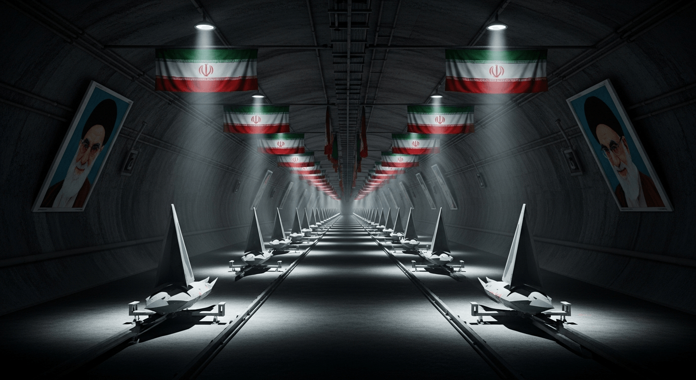 I watched the footage Iran released of a long underground tunnel lined with drones, launch rails, and national flags. The walls are also punctuated by large portraits of the country’s Supreme Leader — an unmistakable effort to fuse military capability with political symbolism. The video is raw, theatrical, and meant to be seen: not just by foreign adversaries, but by domestic audiences as well.